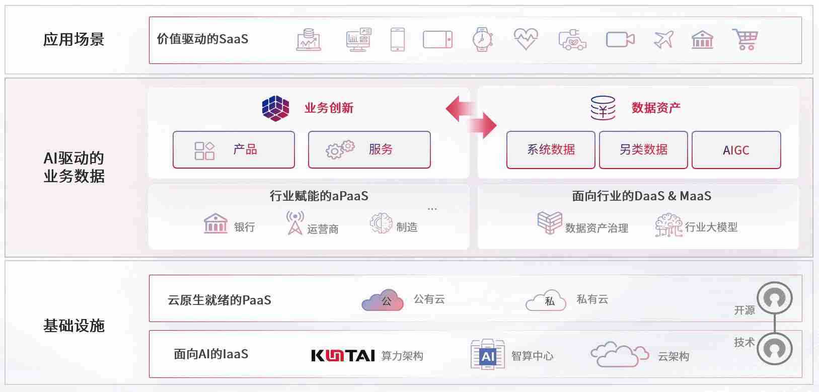 数字时代,,,,围绕企业数字化转型的关键要素,,,,人生就是搏数码开创性的提出数云融合战略和技术体系框架,,着力在云原生、、、、数字原生、、AI原生和信创产业上架构产品和服务能力,,,为处在不同数字化转型阶段的快消零售、、汽车、、、、金融、、、医疗、、、政企、、、教育、、、运营商等行业客户提供泛在的敏捷IT能力和融合的数据驱动能力,,,构建跨界融合创新的数字业务场景和新业务模式,,助力企业级客户建立面向未来的核心能力和竞争优势,,,,全面推动社会的数字化、、、、智能化转型升级。。